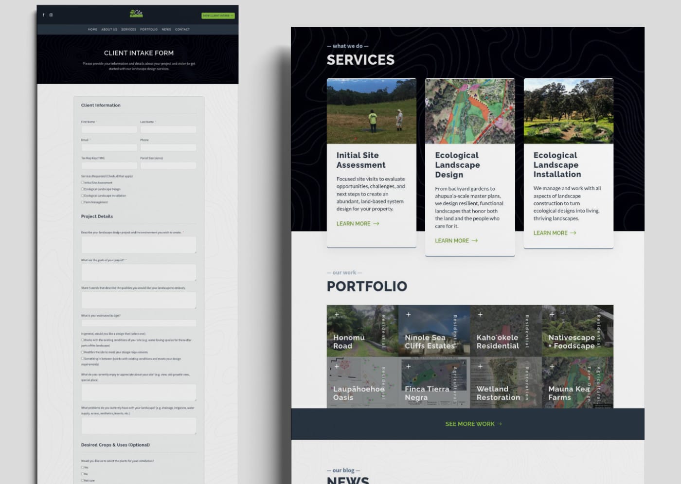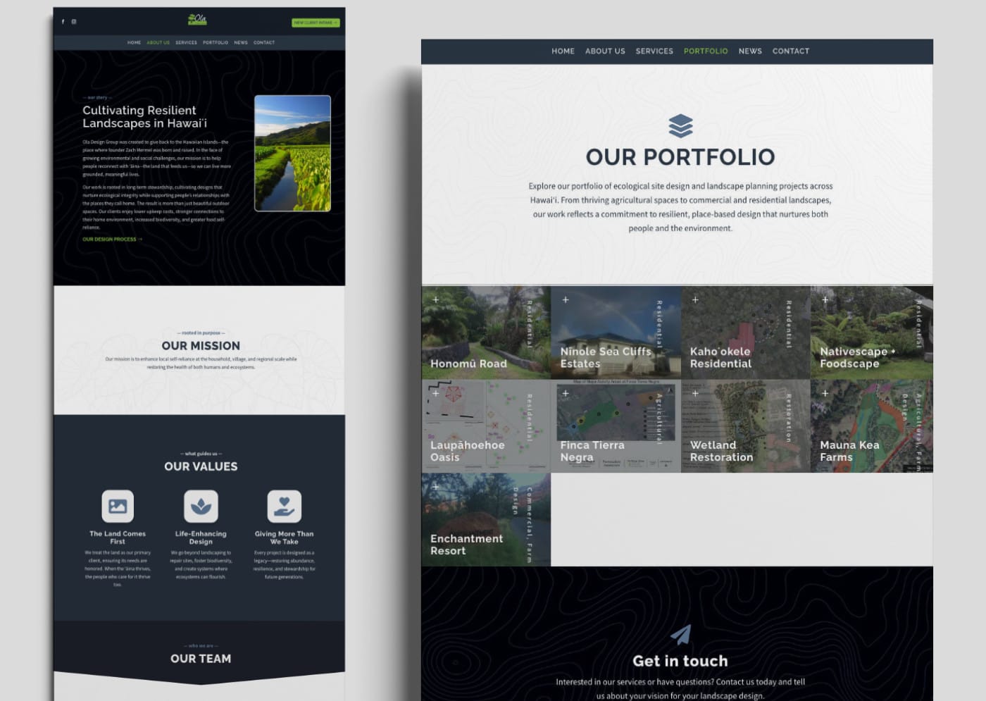 Ola Design Group is a Hawaiʻi-based landscape design and architecture firm specializing in ecological landscapes that promote long-term stewardship of land and resources. As the firm's capabilities evolved, so did the need for a digital presence that could communicate its values and attract larger, higher-value projects.